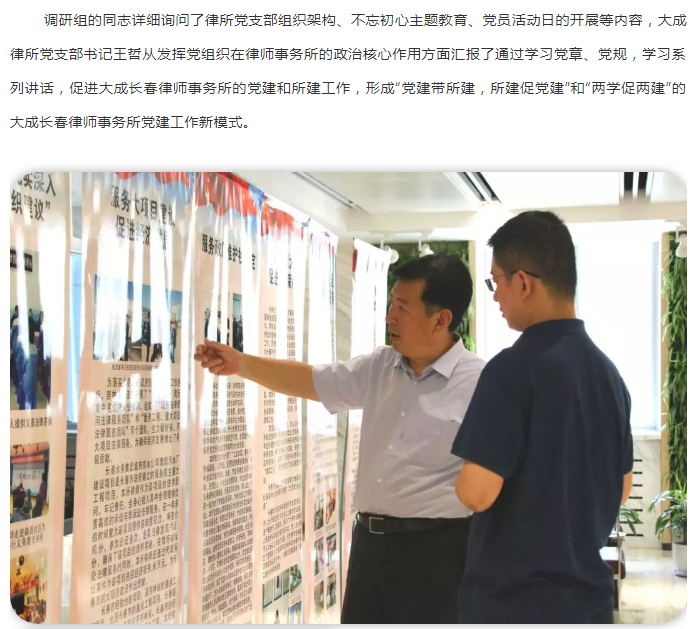 大成动态|中央组织部、吉林省委组织部领导莅临北京大成(长春)律师事务所检查指导律所党建工作