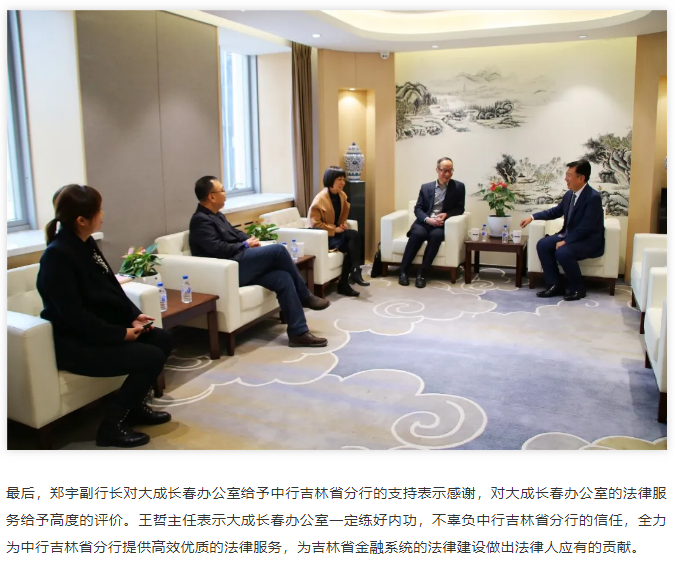 大成动态|中国银行吉林省分行领导莅临北京大成(长春)律师事务所