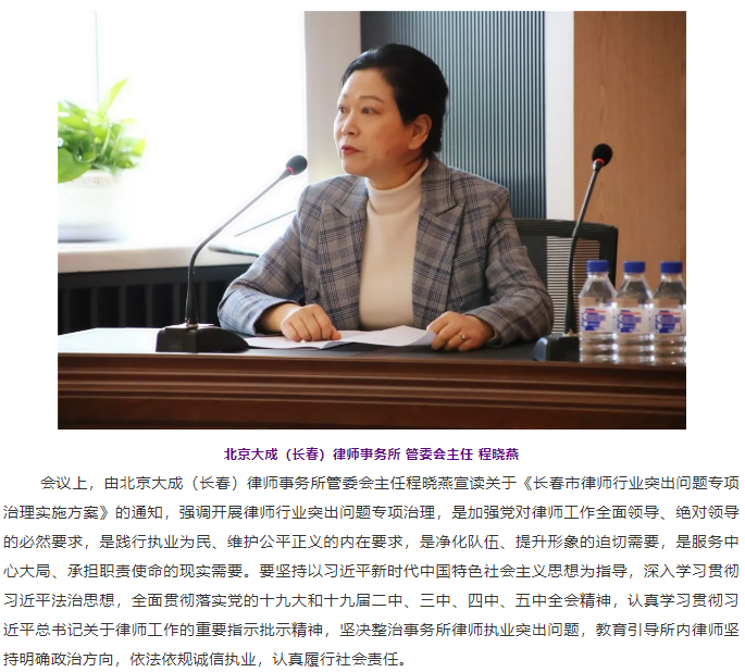 北京大成(长春)律师事务所召开律师行业突出问题专项治理动员大会