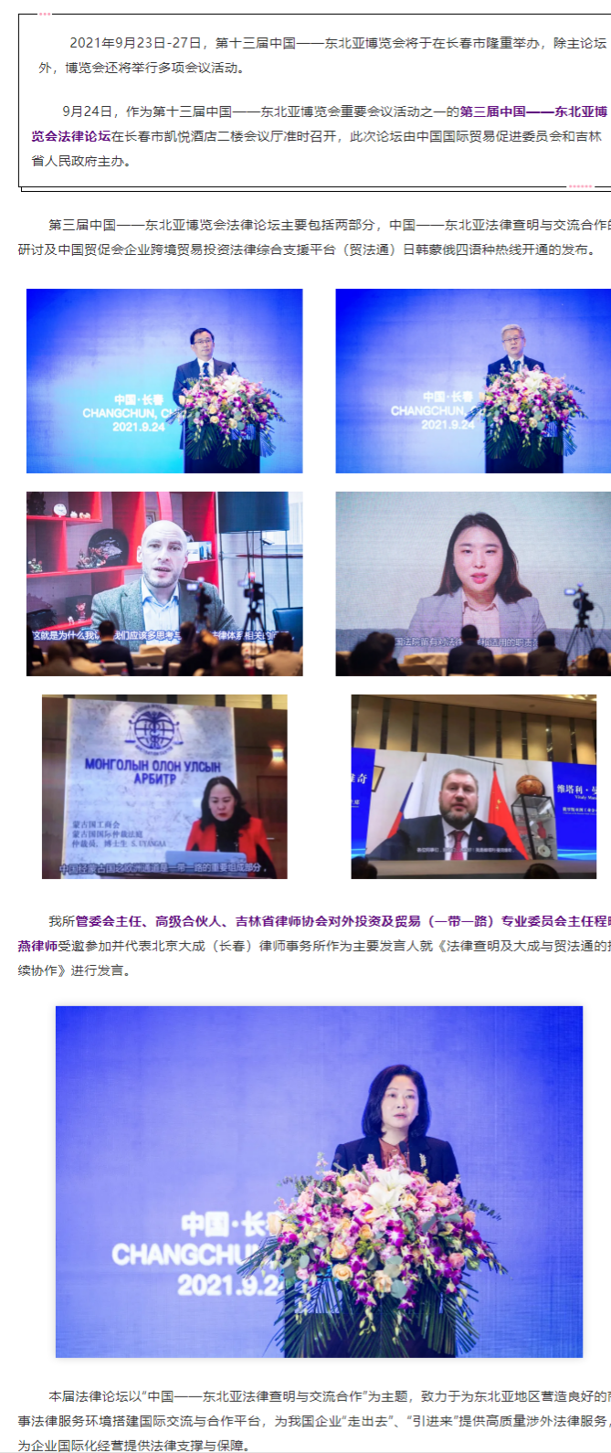 我所管委会主任、高级合伙人程晓燕律师受邀参加第三届中国——东北亚博览会法律论坛并发言