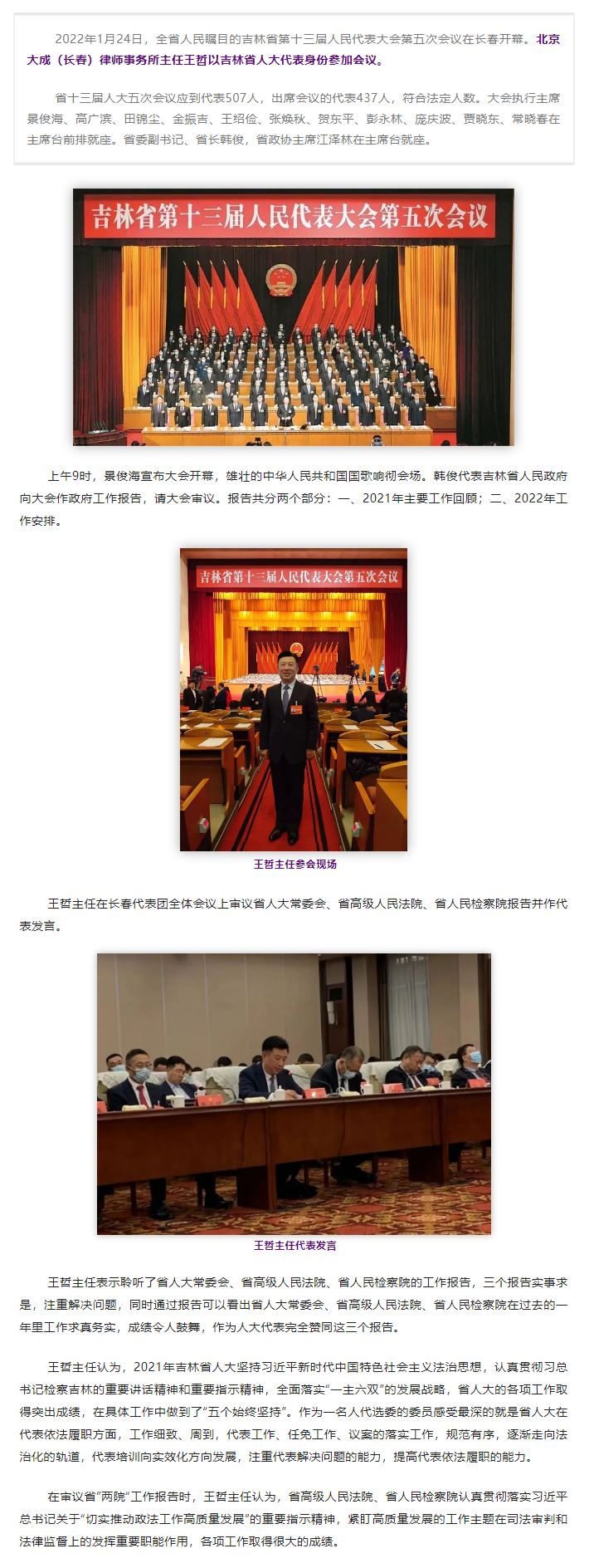 大成动态|王哲主任作为省人大代表参加吉林省第十三届人民代表大会第五次会议